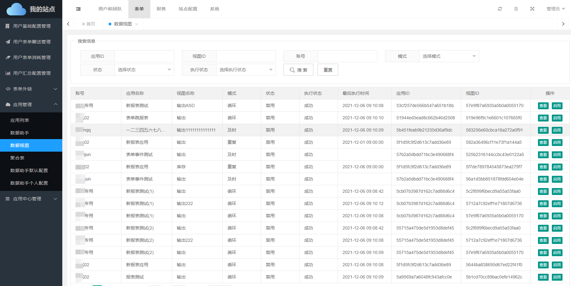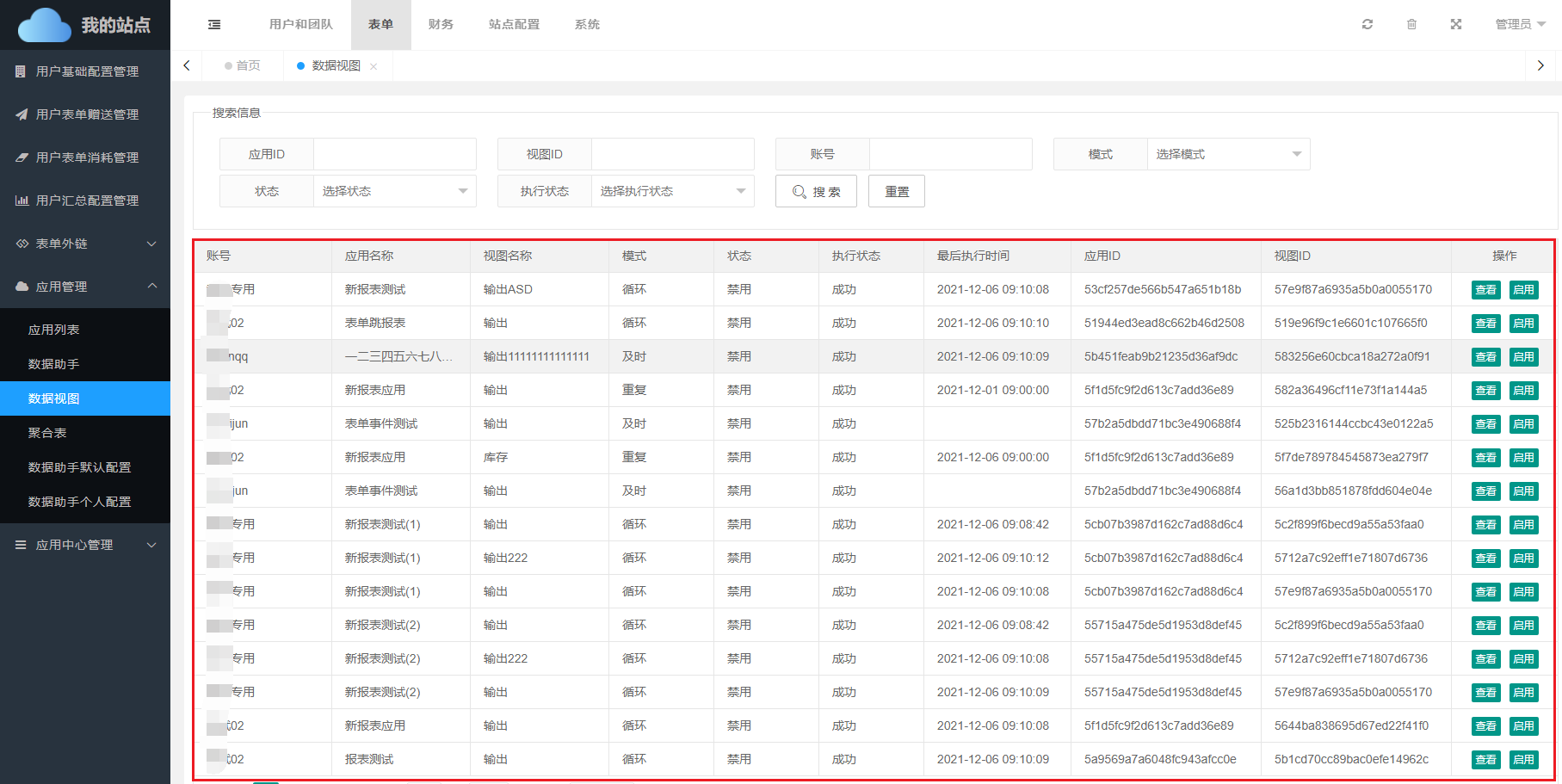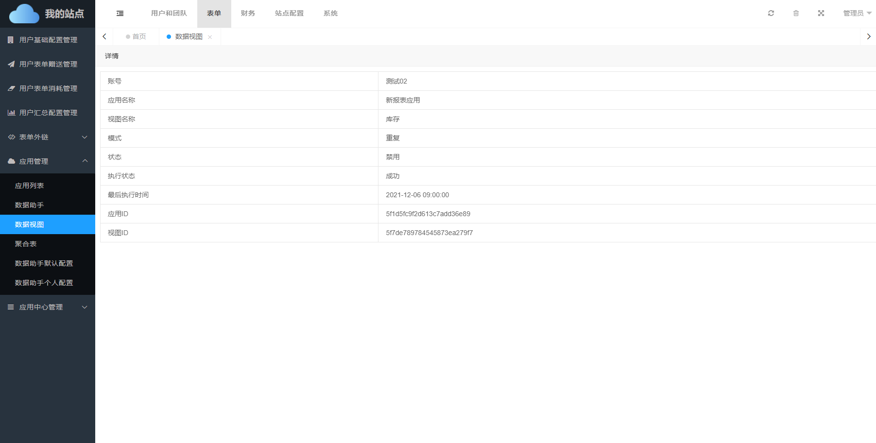 数据视图,可以对表单内的数据进行复杂运算或计算之后,进行输出并被表单、报表进行调用;通过本页可以对系统内所有已存在的数据视图进行管理。