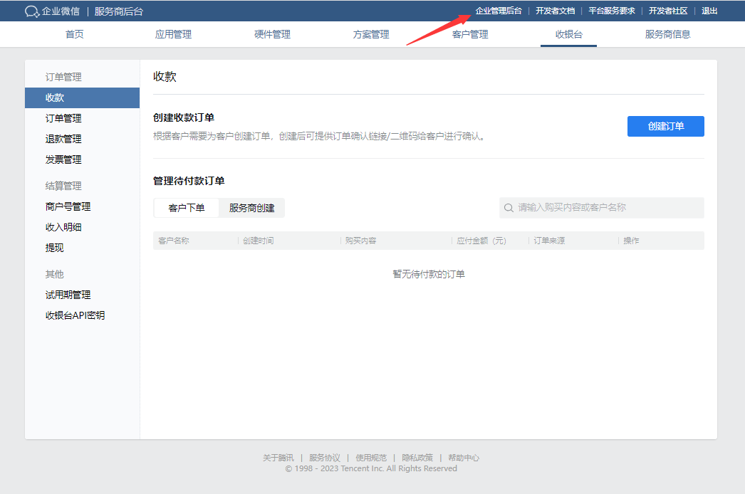登陆企业微信服务商后台,复制这里的CorpID到后台CPORP_ID中