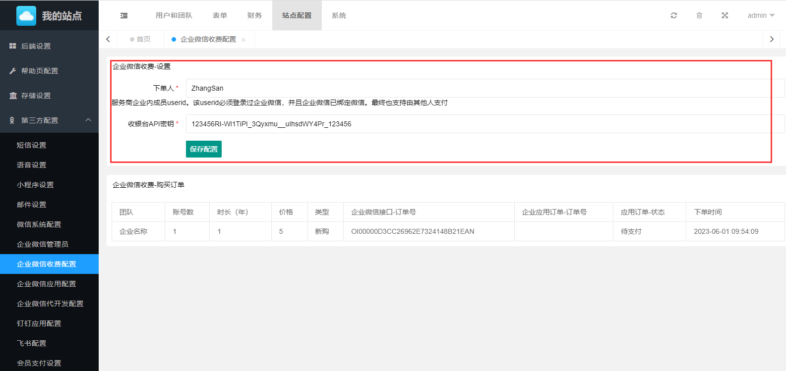 依次进入【第三方管理】->【企业微信应用配置】->切换到【企业微信第三方配置】