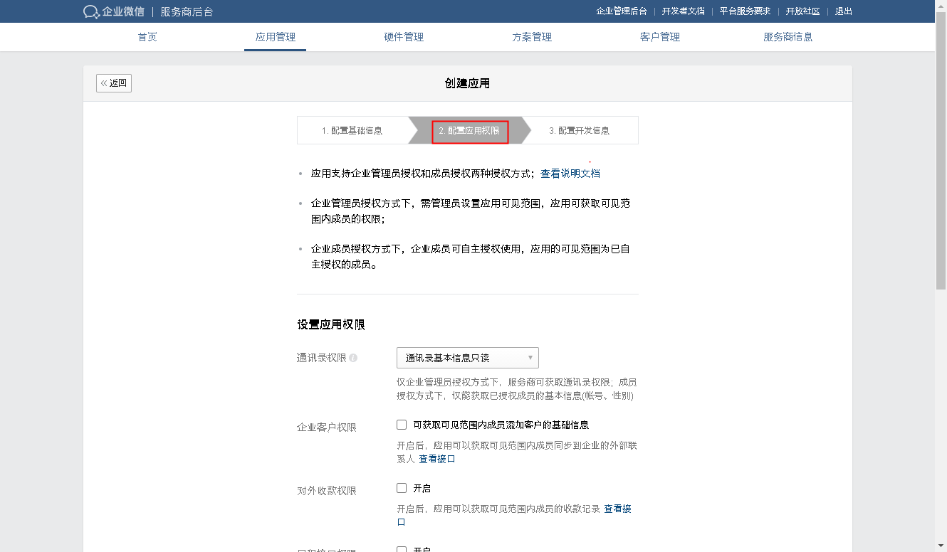 应用权限部分需留意最下方成员敏感信息处,需勾选