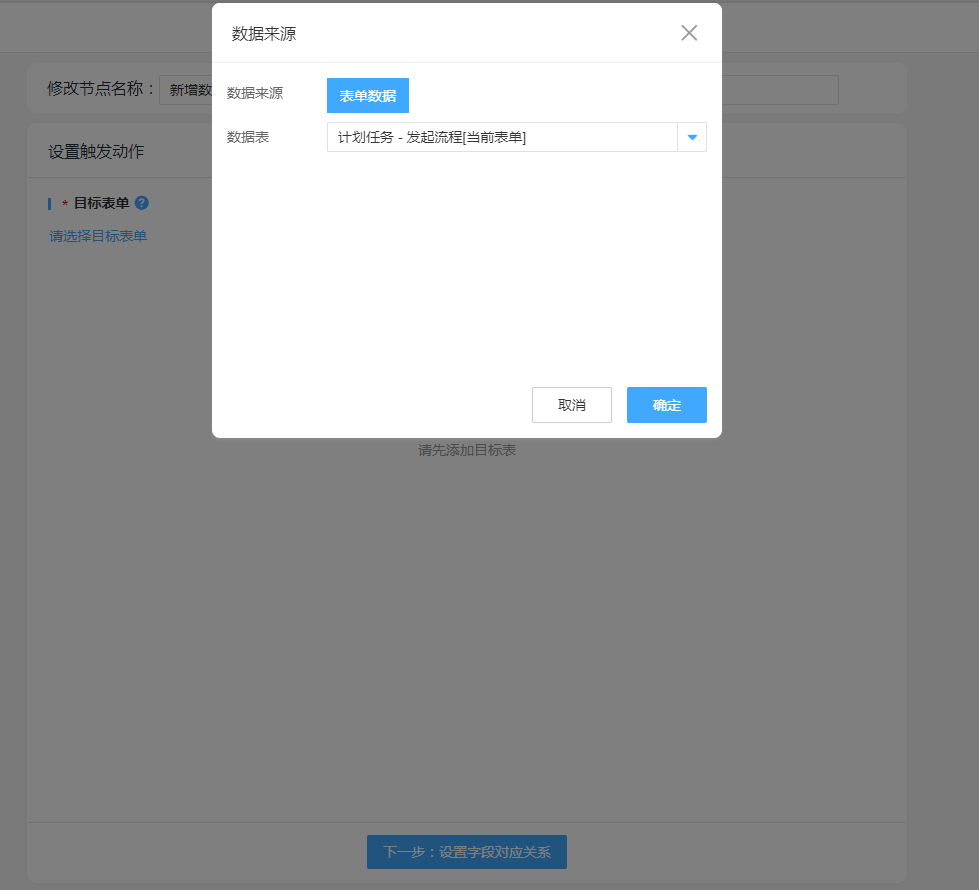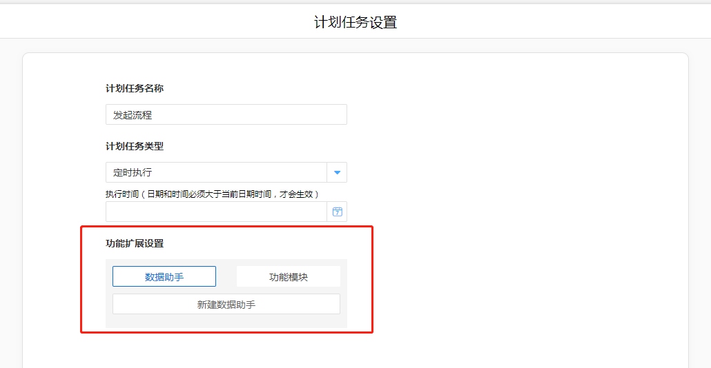- 进入流程表单的计划任务配置页面,点击数据助手进入助手配置