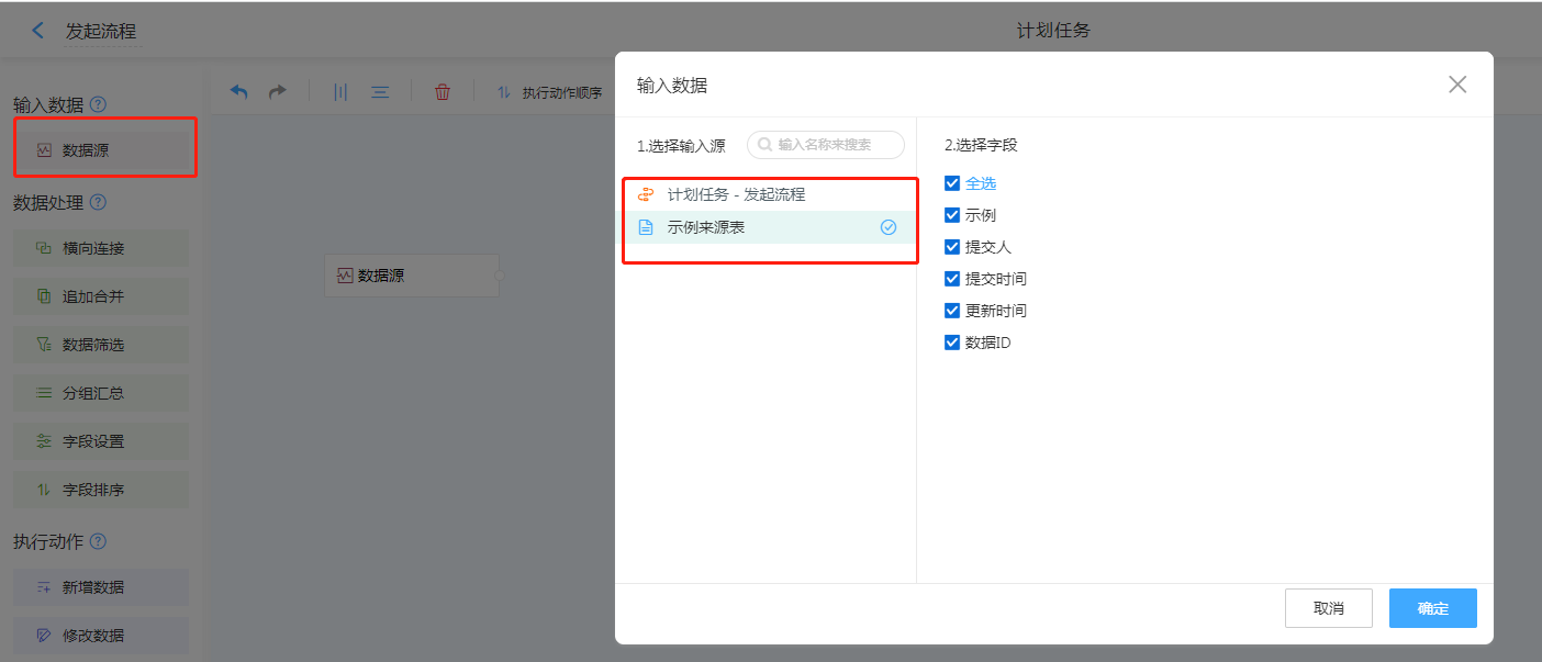 数据源,选择需要进行审核的数据表单