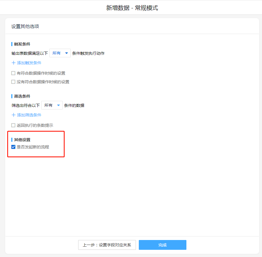 其他设置,勾选发起流程。