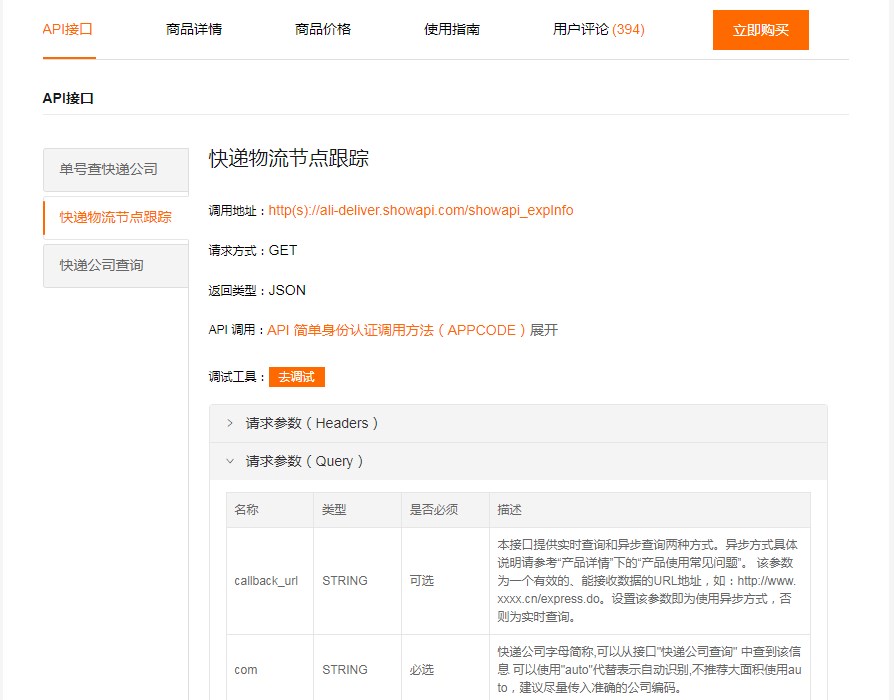 • URL:https://ali-deliver.showapi.com/showapi_expInfo?nu=快递单号&com=auto