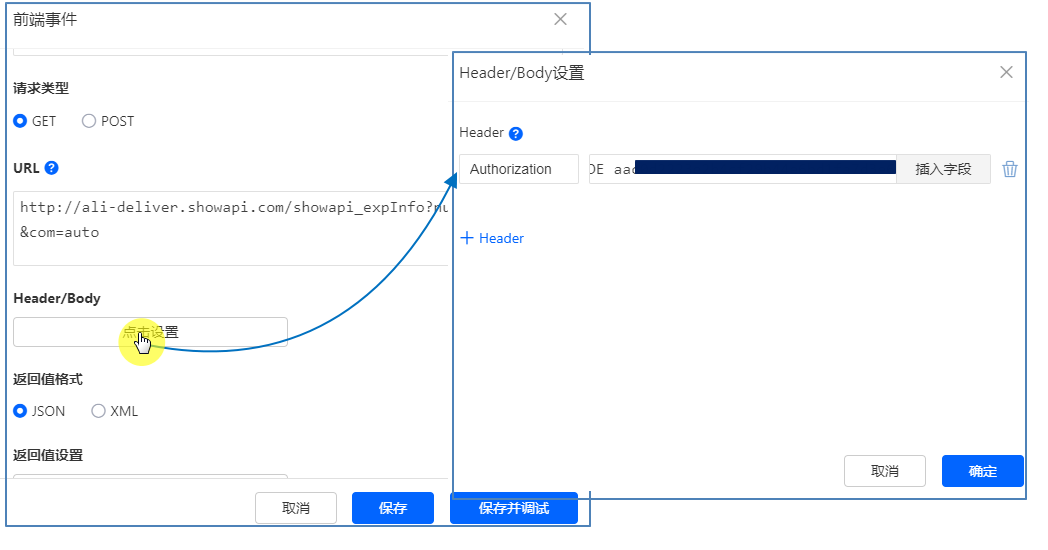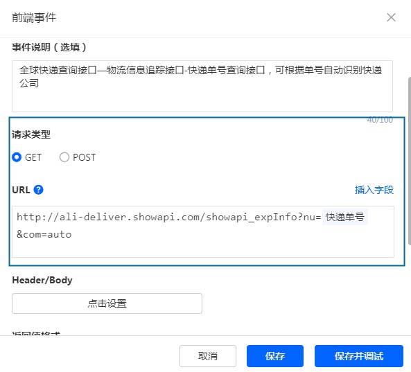 根据阿里云接口的介绍,可得到接口的请求类型和URL,我们可以按以下内容填入: