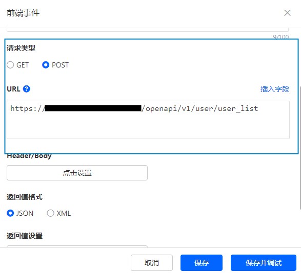 根据开放平台接口的介绍,可得到接口的请求类型和URL,我们可以按以下内容填入:
