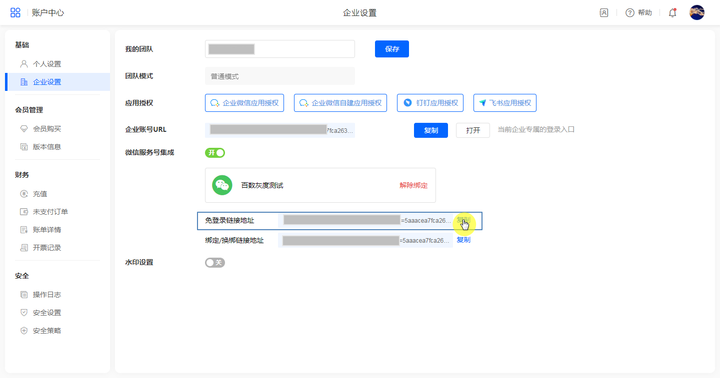 在本平台授权绑定以后,将生成 2 条链接,一条为免登录链接,一条为授权绑定/换绑链接。
