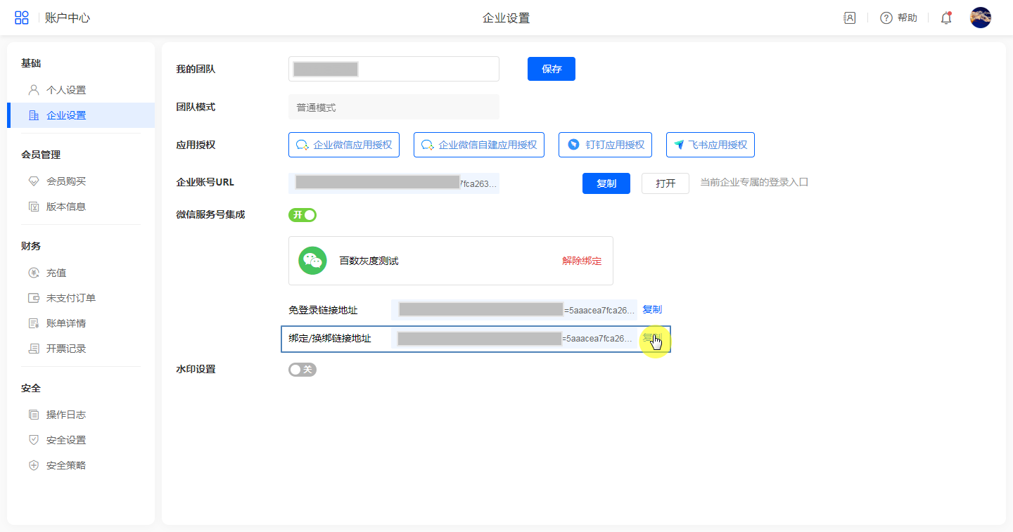 绑定/换绑链接可以复制后发送给成员完成同本平台账号的绑定及换绑操作。