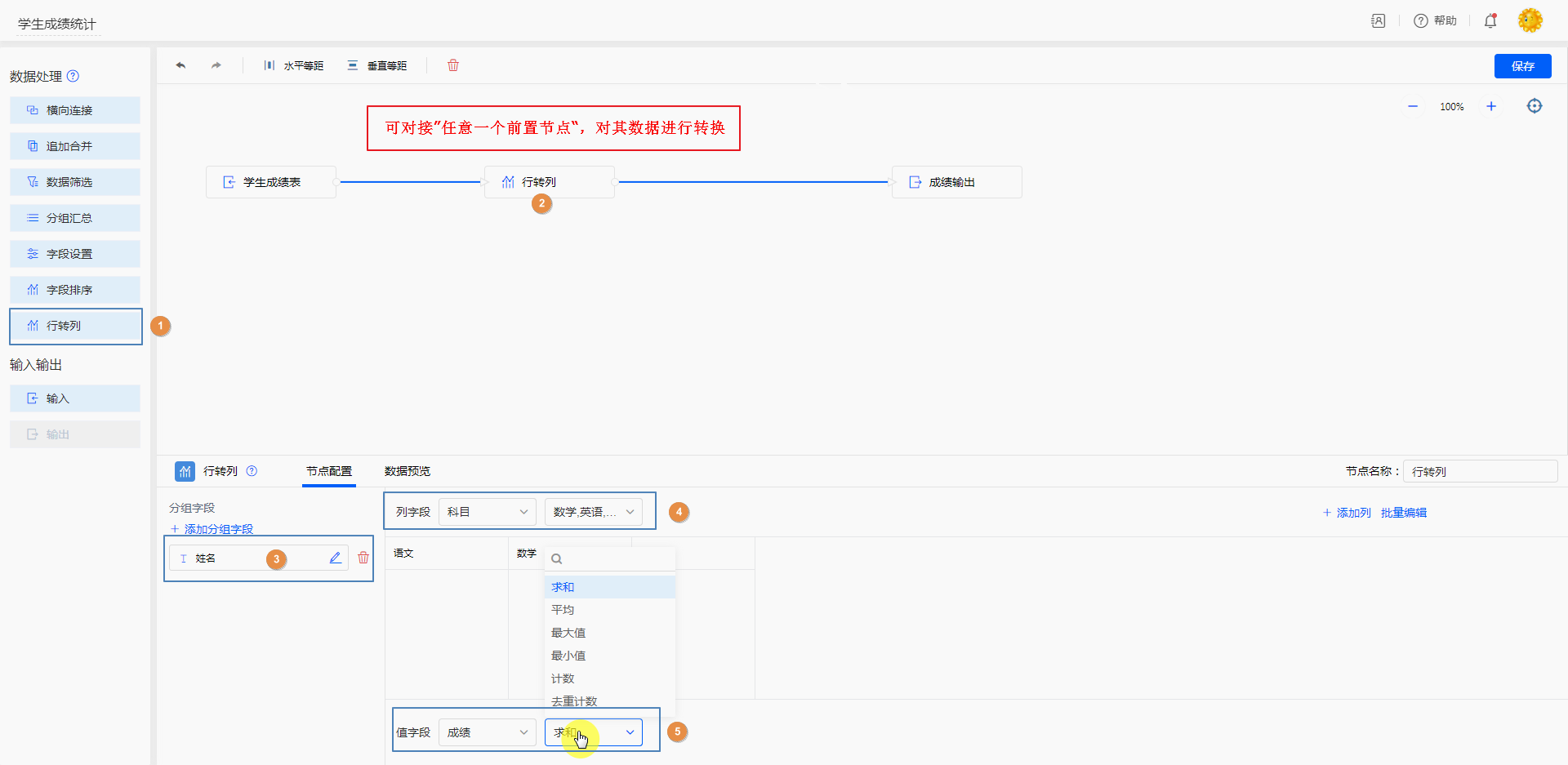 行转列的配置规则如下: