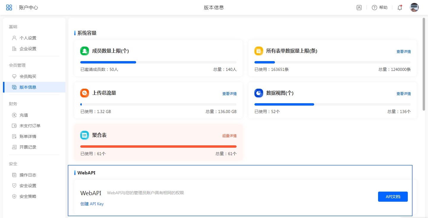 - 数据量:表单录入的数据的总条数,提交一次算一条数据。