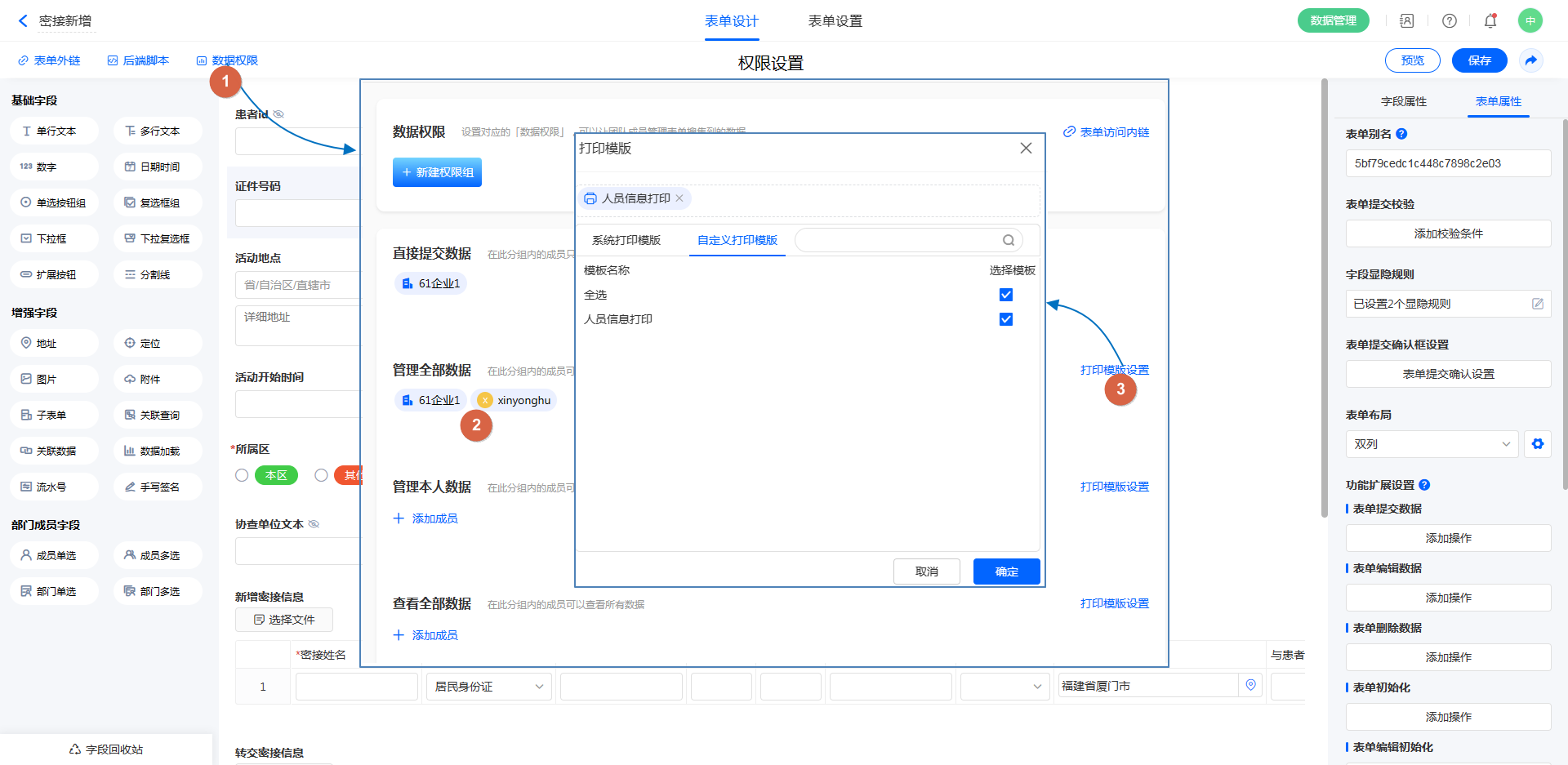 第一步:进入表单设计页面>>数据权限下,新增权限组。