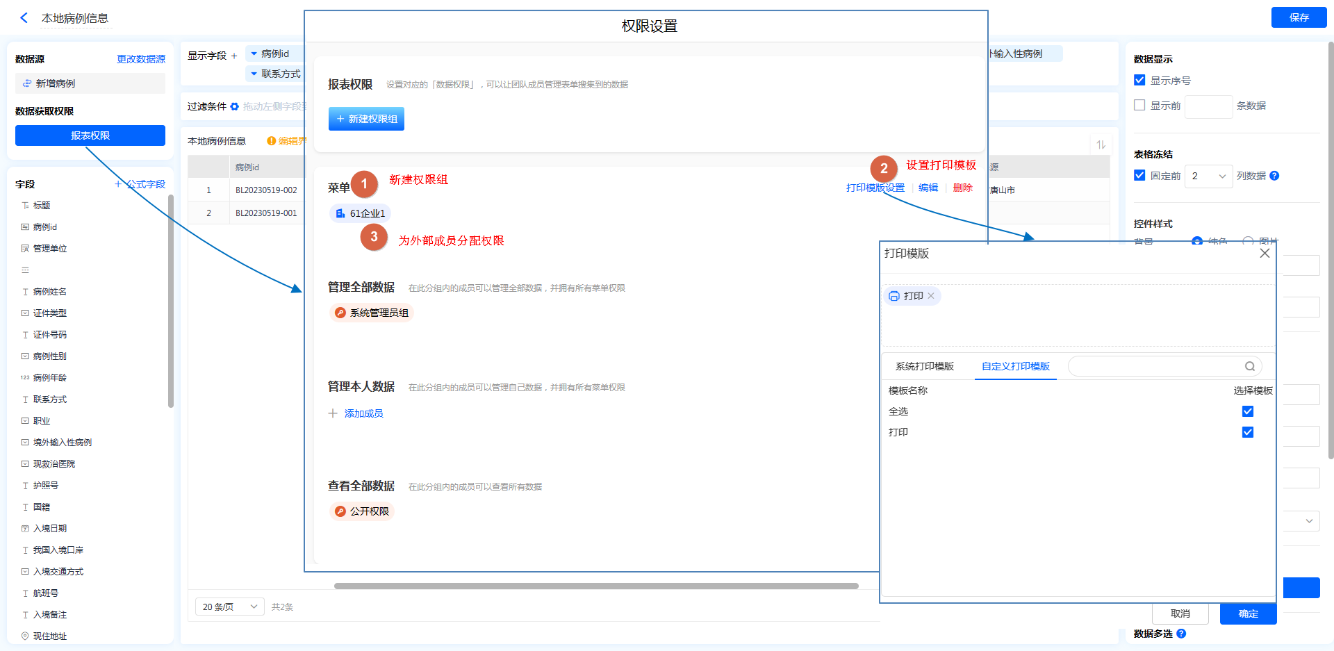 第一步:进入报表设计页面>>单个图表设计页面>>报表权限下,新增权限组。