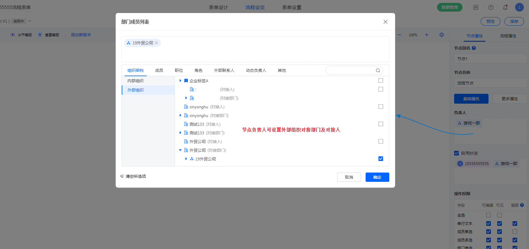 第二步:设置流程节点负责人为互联组织或互联组织成员。