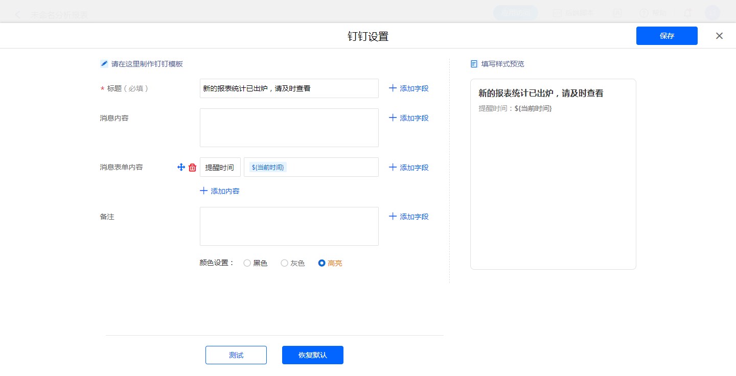 • 报表定时提醒设置钉钉消息模板