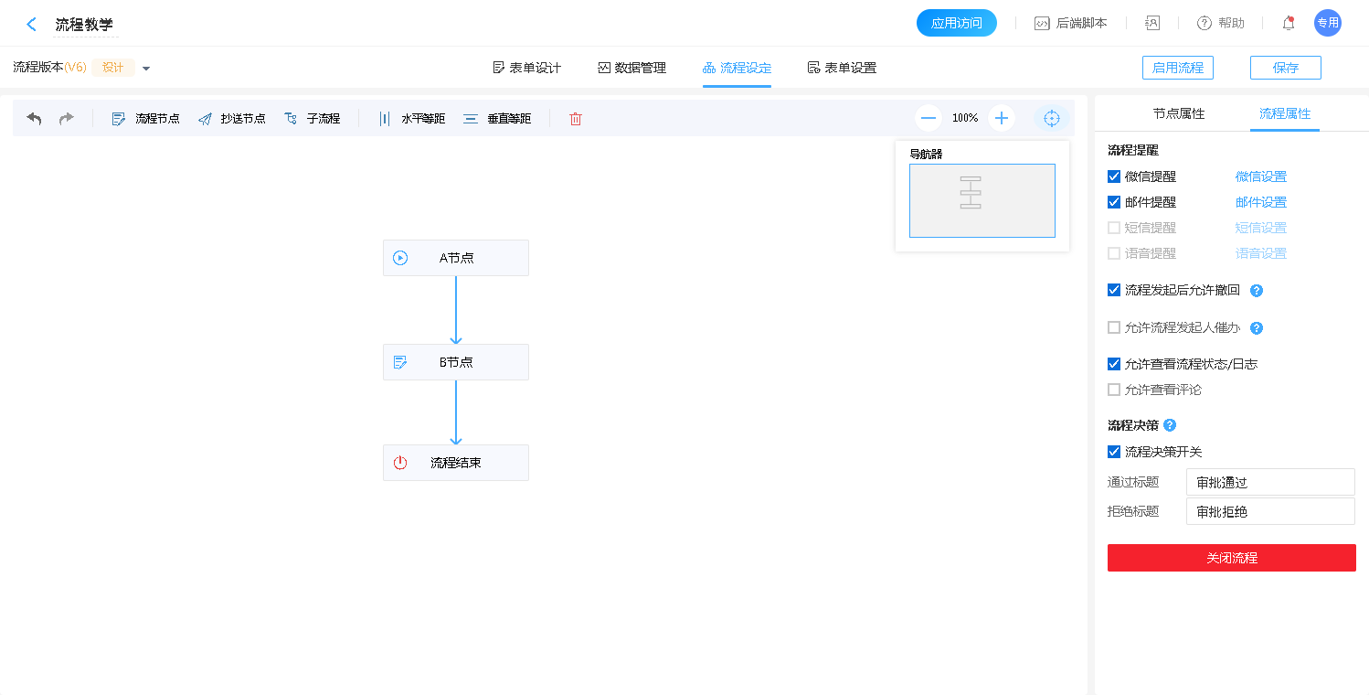 这个就是最基本的节点流转条件,最简单的流转条件就是没有条件