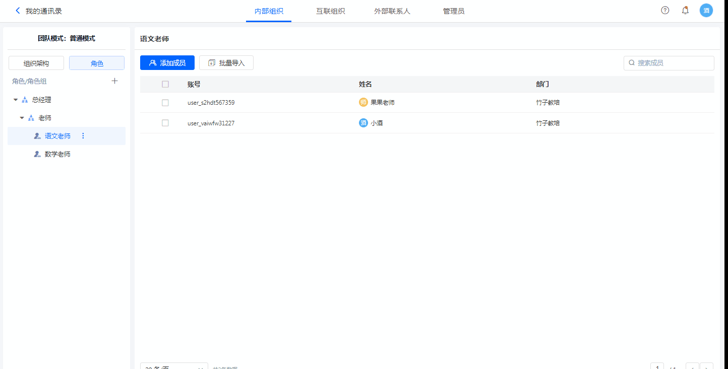 为满足公司内跨部门协作的需求,平台在组织架构之外新增角色功能。