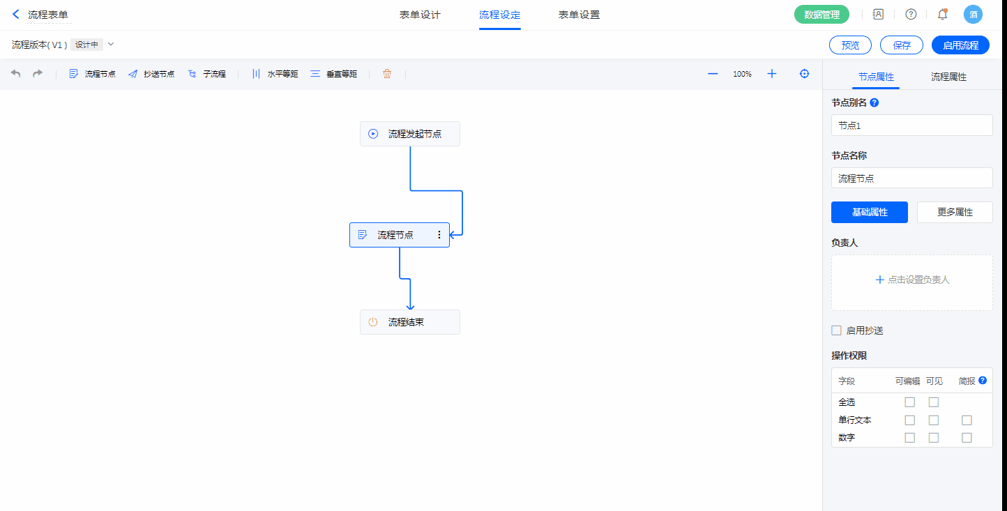 4. 流程节点负责人、抄送人、转交、负责人为空转交指定负责人、节点限时处理。