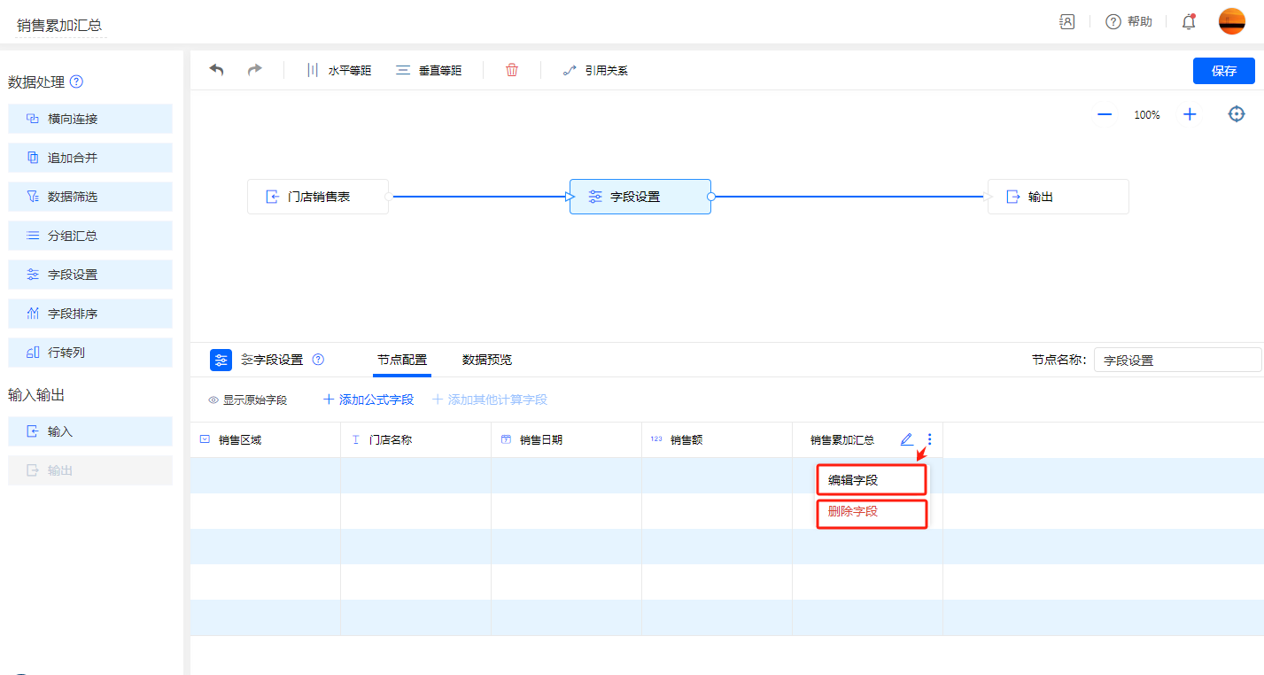 添加好的累加汇总字段还可以进一步编辑修改以及删除: