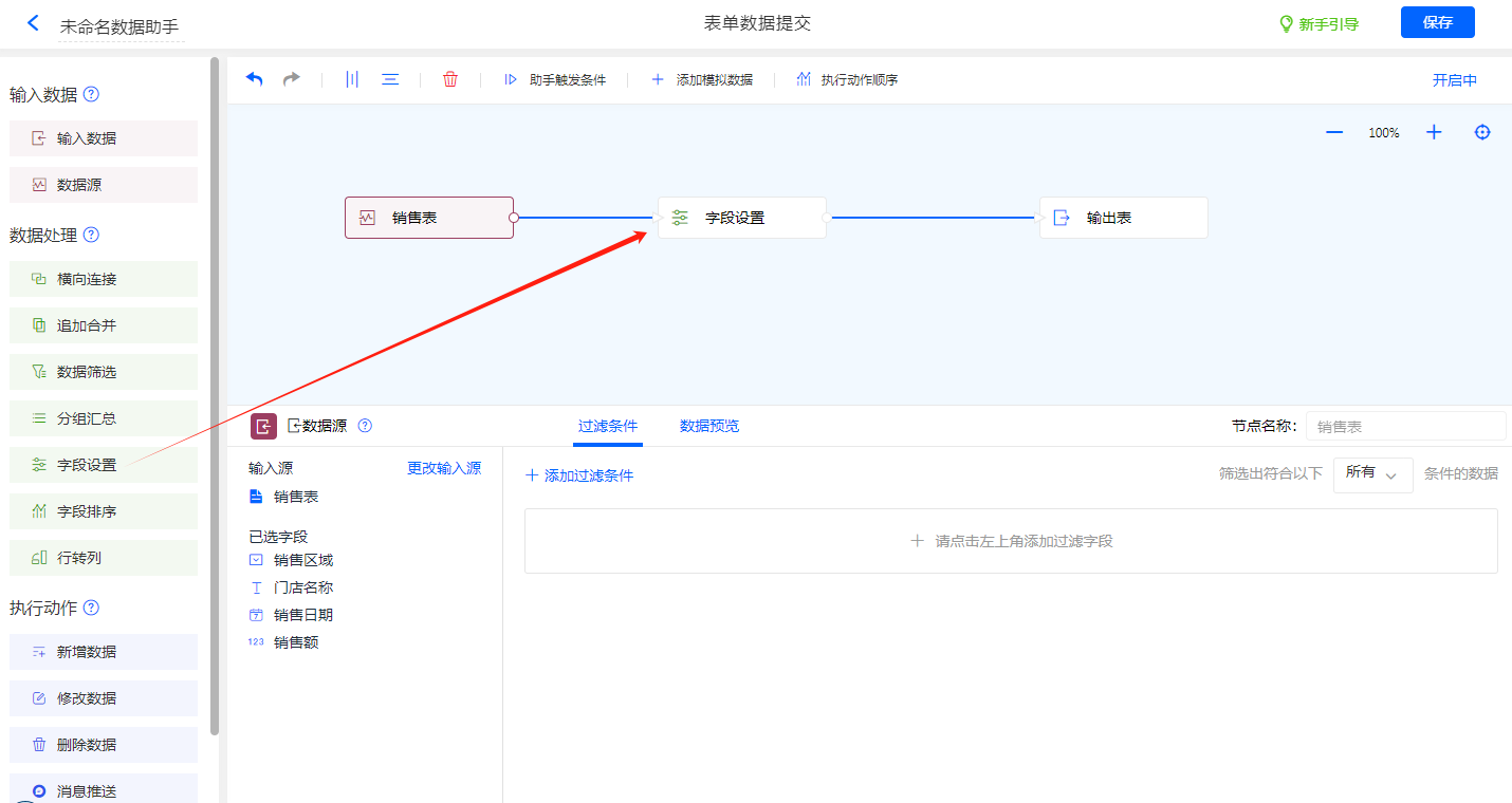 添加字段节点设置