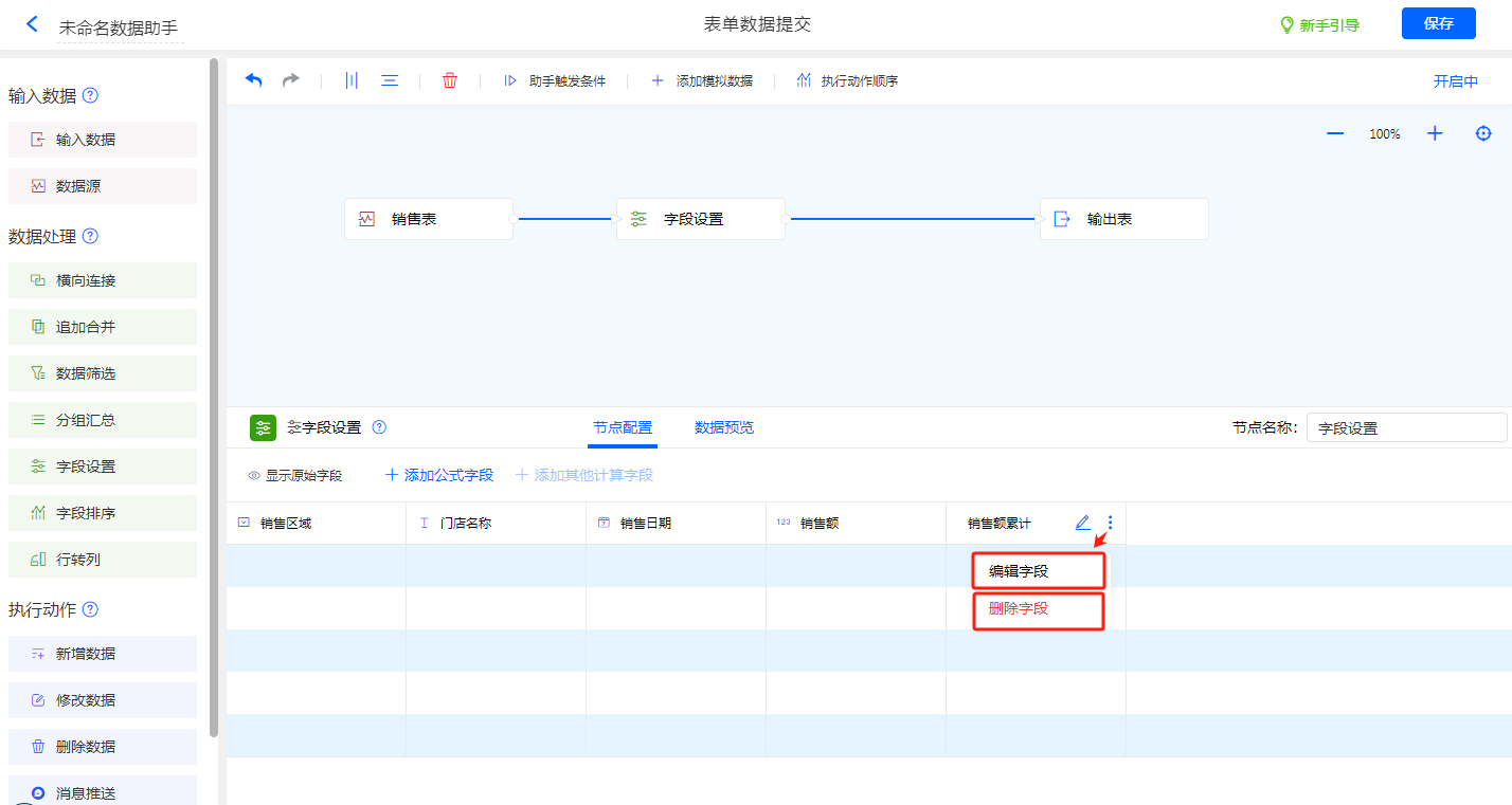 添加好的累加汇总字段还可以进一步编辑修改以及删除: