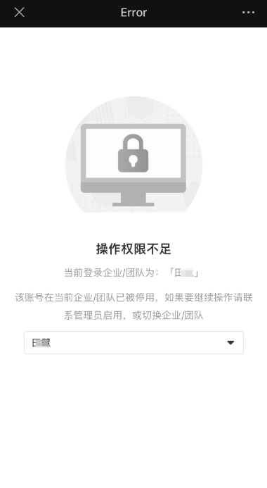 成员停用后,访问被停用的企业。反之,成员启用后,可以恢复所有可访问的权限。