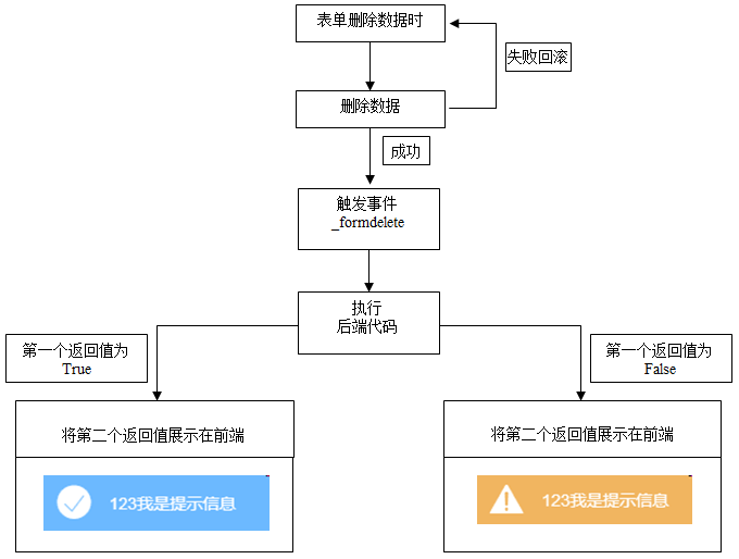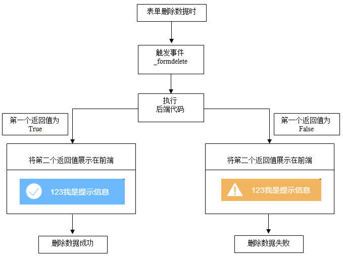 前置返回 True:通过删除操作 前端展示文本信息,为空无提示