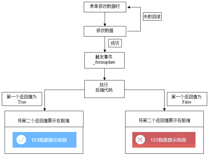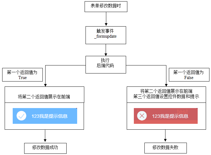 前置返回 False:拦截编辑操作 前端展示文本信息,为空无提示 根据json字符串,修改前端表单字段赋值与属性
