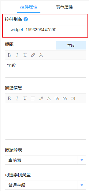 字段别名是用于表单命令的属性设置,表单命令要读写表单数据,都是需要通过别名来实现。