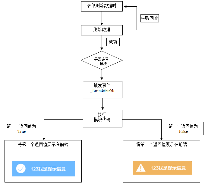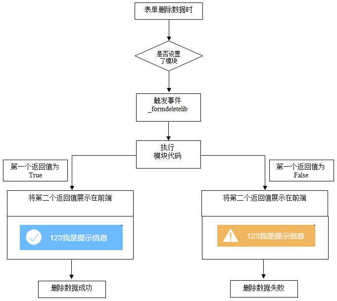 前置返回 True:通过删除操作 前端展示文本信息,为空无提示