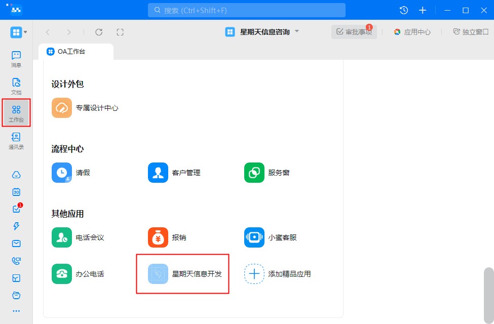 • 在工作台-其他应用下,找到创建的应用,点击该应用,可直接进入系统。