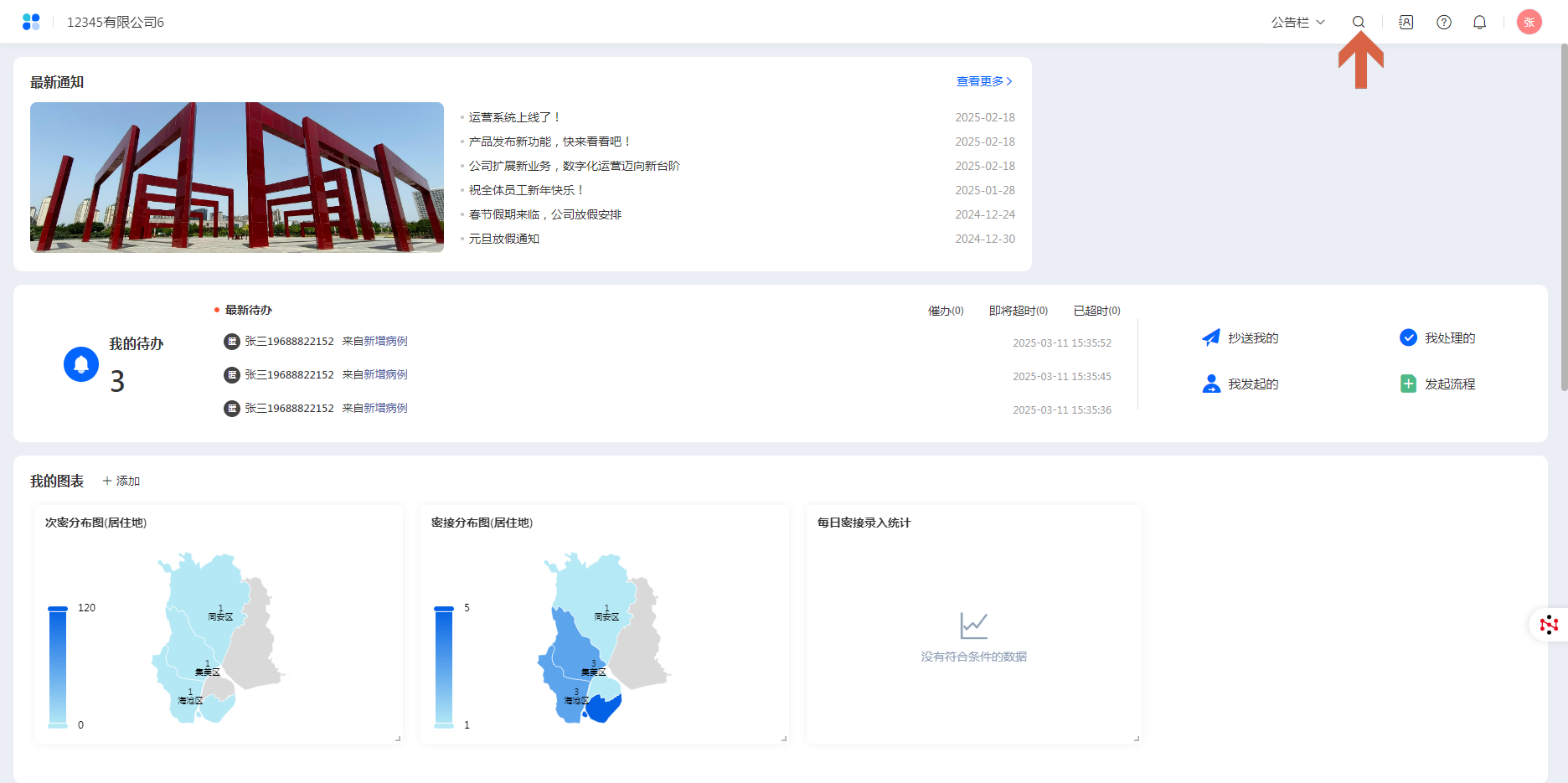 进入某一个应用后,点击右上角返回至工作台,再点击其他的应用,即可进入到其他应用中。