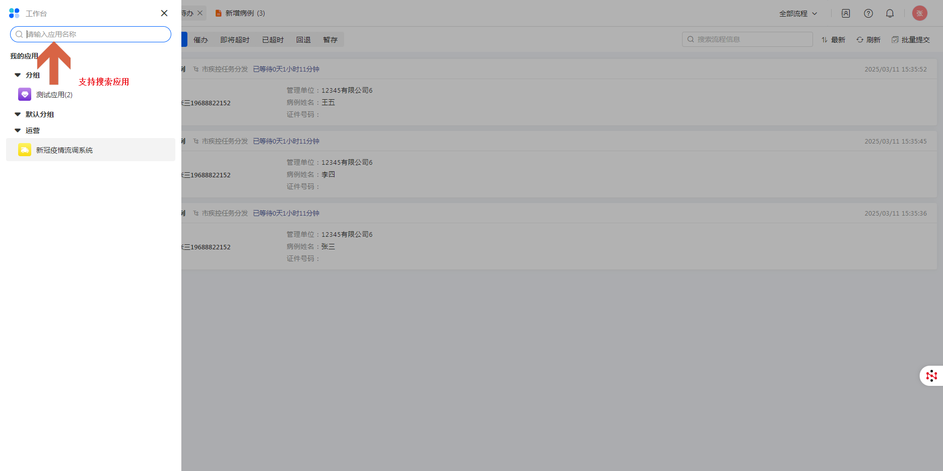 进入某一个应用后,点击左上角的应用名称,即可看到工作台中的所有应用。点击要切换的应用,即可直接完成应用切换,进入到其他应用中。