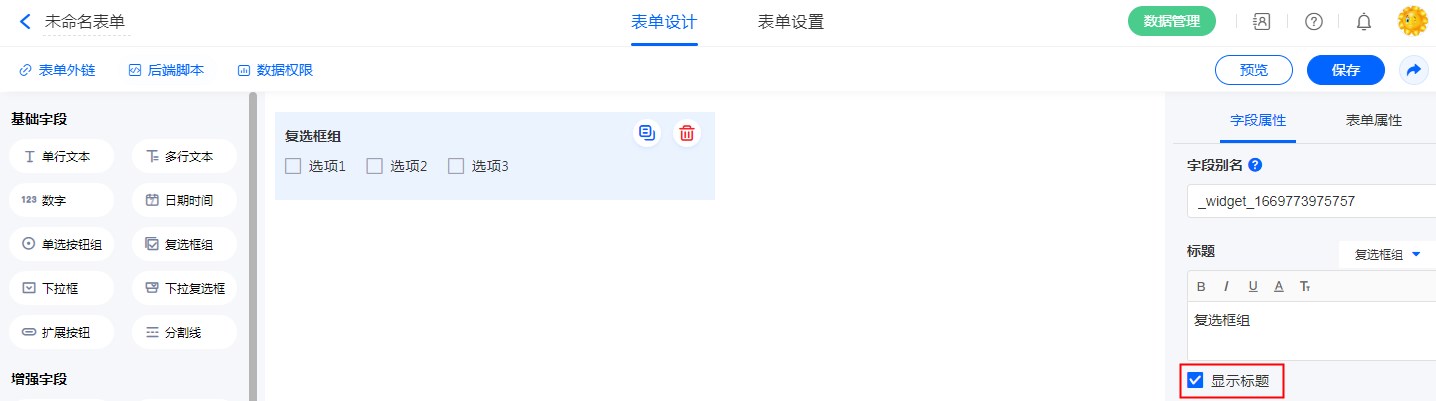 “字段别名”用于后端开发,默认为系统自动生成的随机字符串,可修改。