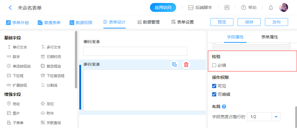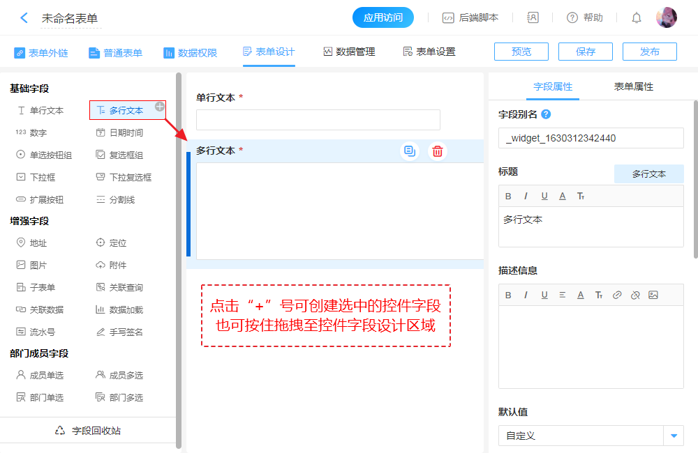 3. 如果“多行文本”属于子表单内的控件,则无法设置此属性。
