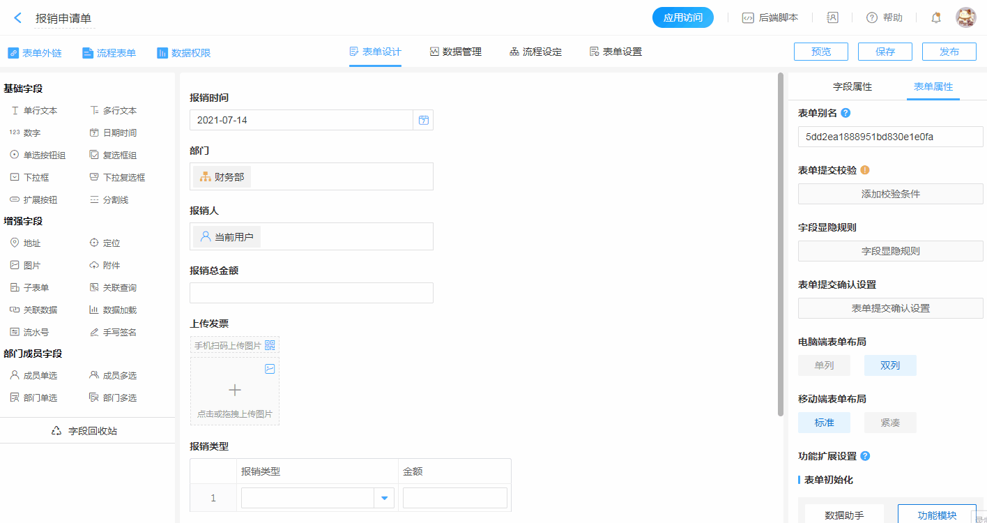 • 流程表单的数据权限详情见流程表单数据权限。