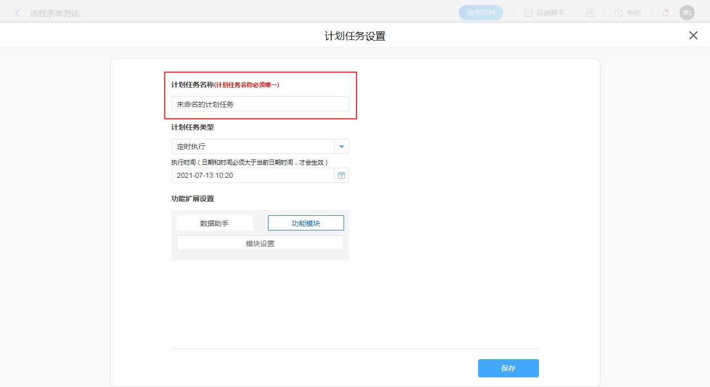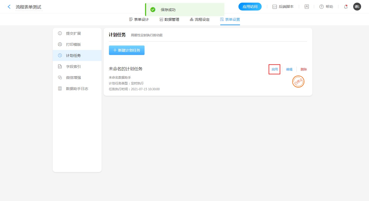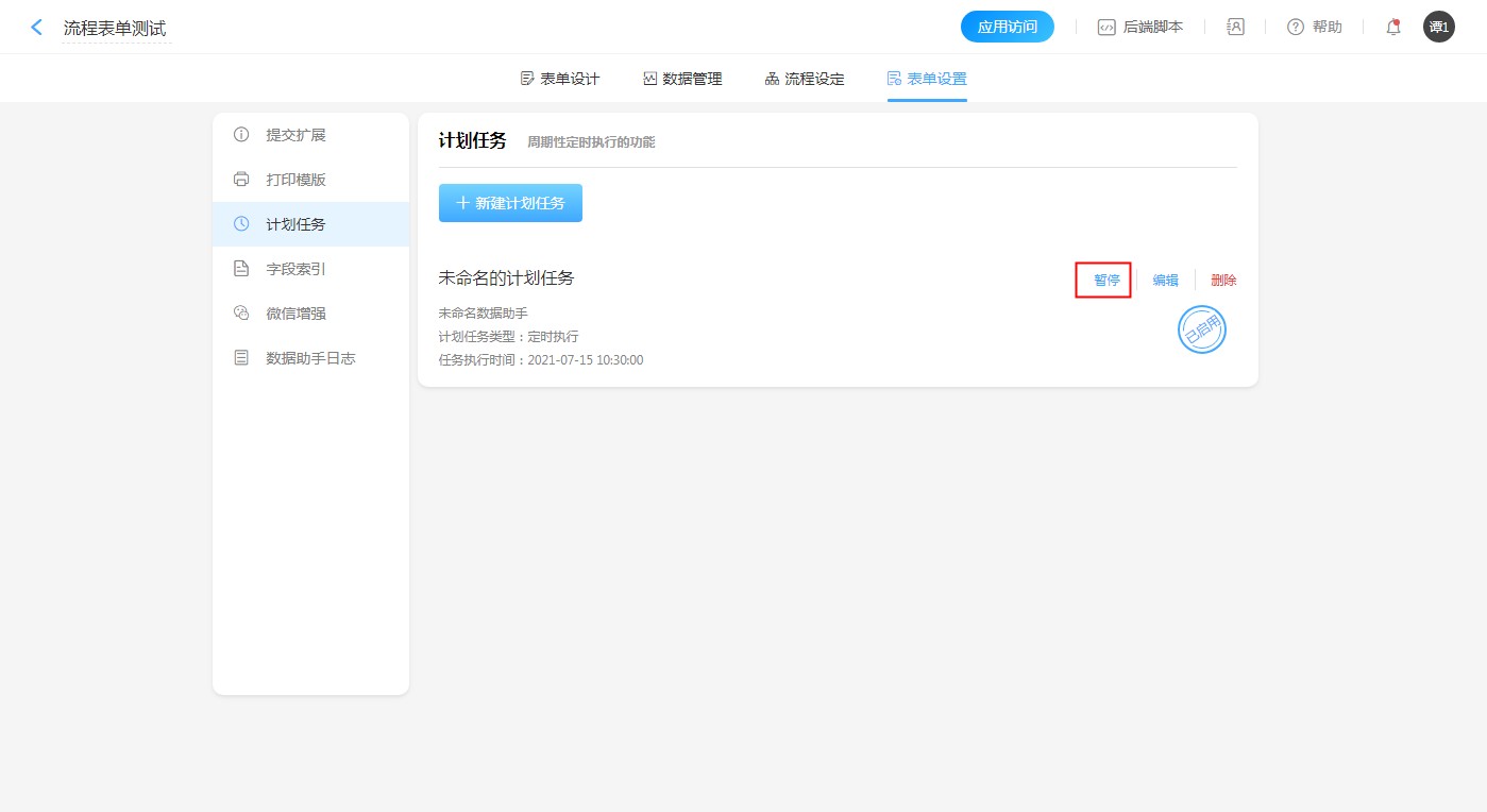 • 包含计划任务的应用或表单被复制后,需手动激活(即启用)表单内的计划任务。