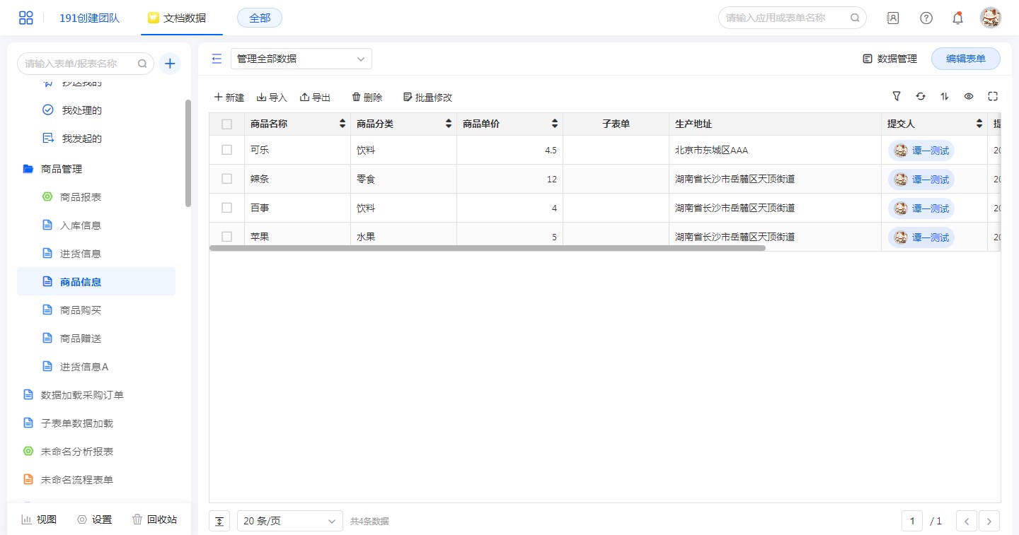 • 页面可以新增、删除、编辑、查看、导入、导出、批量操作、数据回收站、筛选条件,显示字段等所有功能。