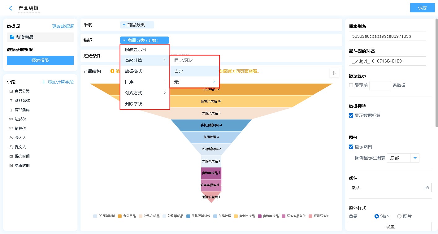 • 高级计算:高级计算可进行同环比、占比的计算,详见同环比和占比。