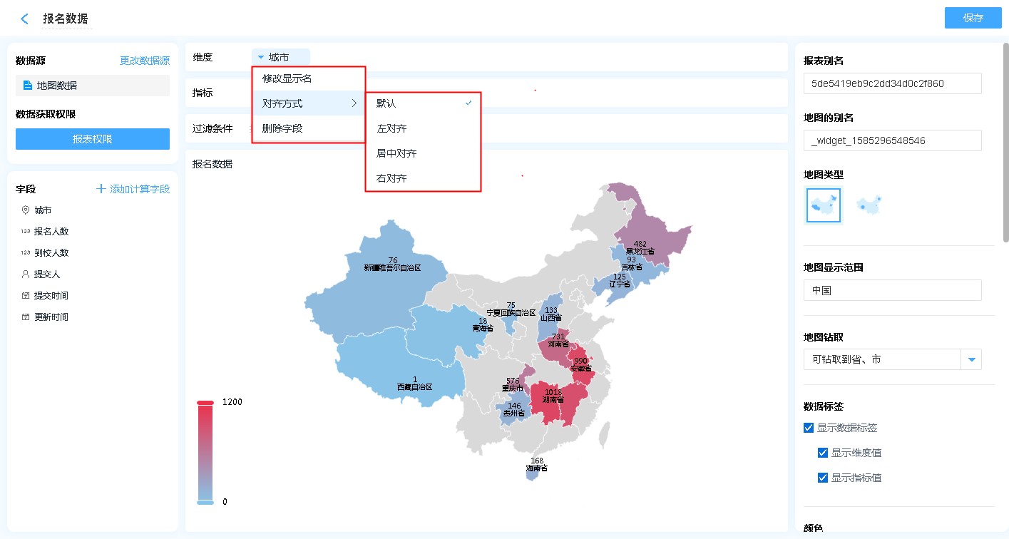 地图报表主要用来统计不同区域的数据,进行数据分享;