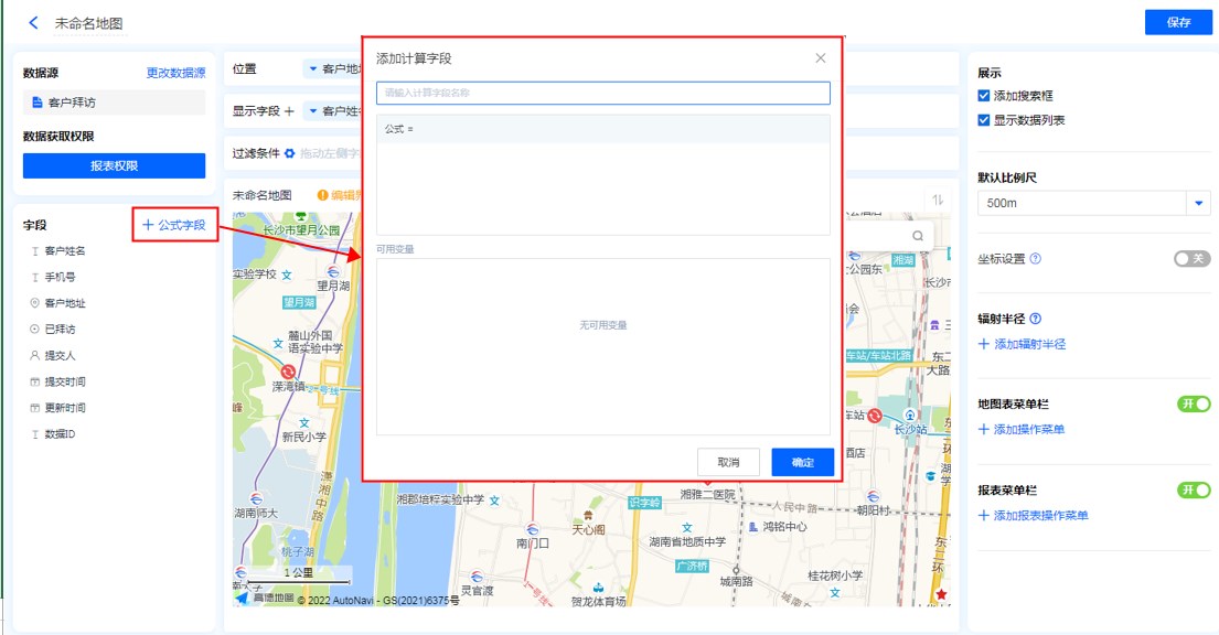 • 地图标识功能:显示字段勾选地图标识功能后,地图的位置标记处会显示该字段信息。