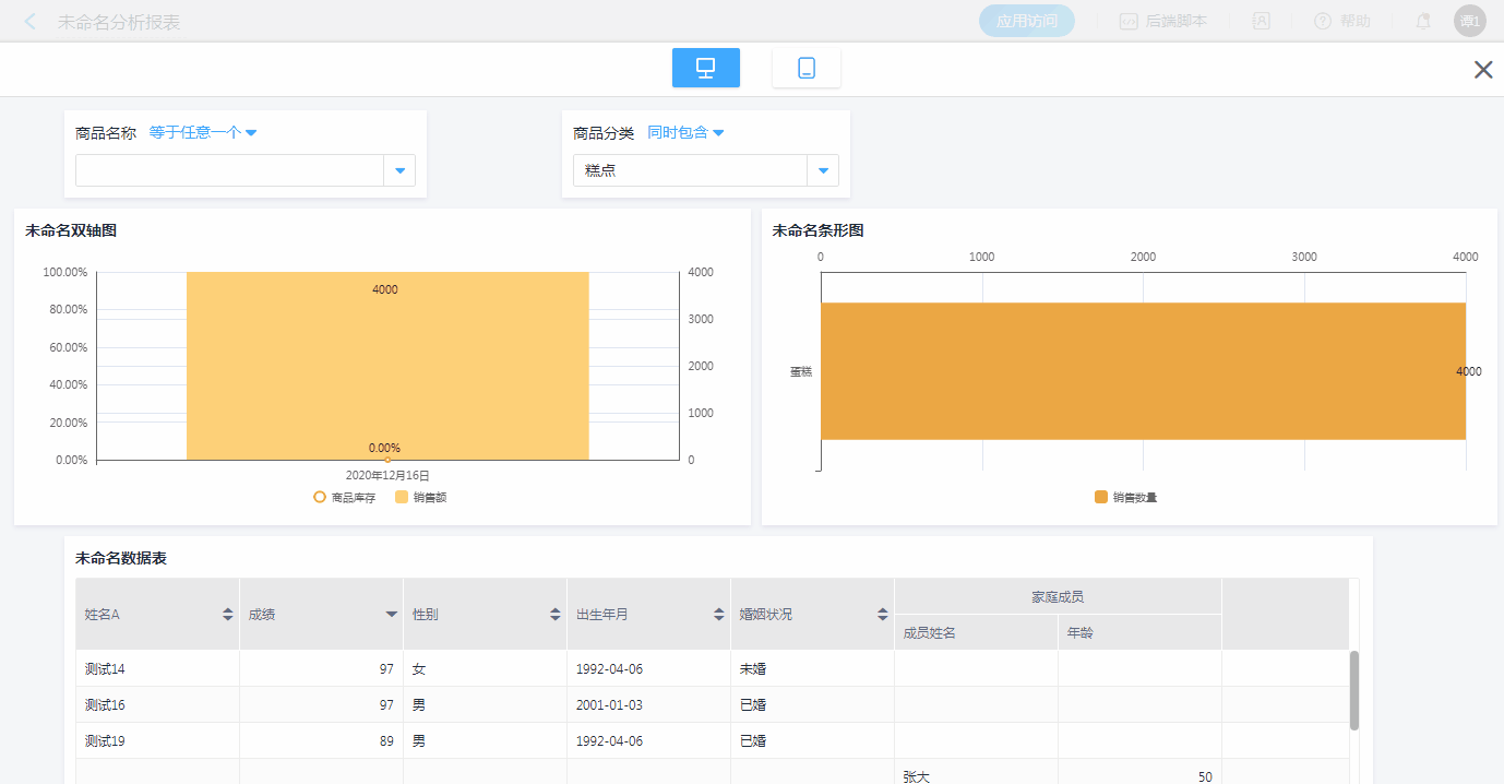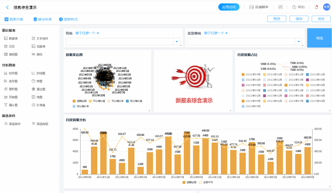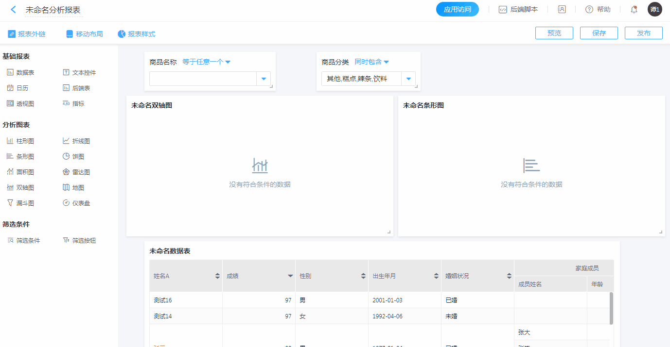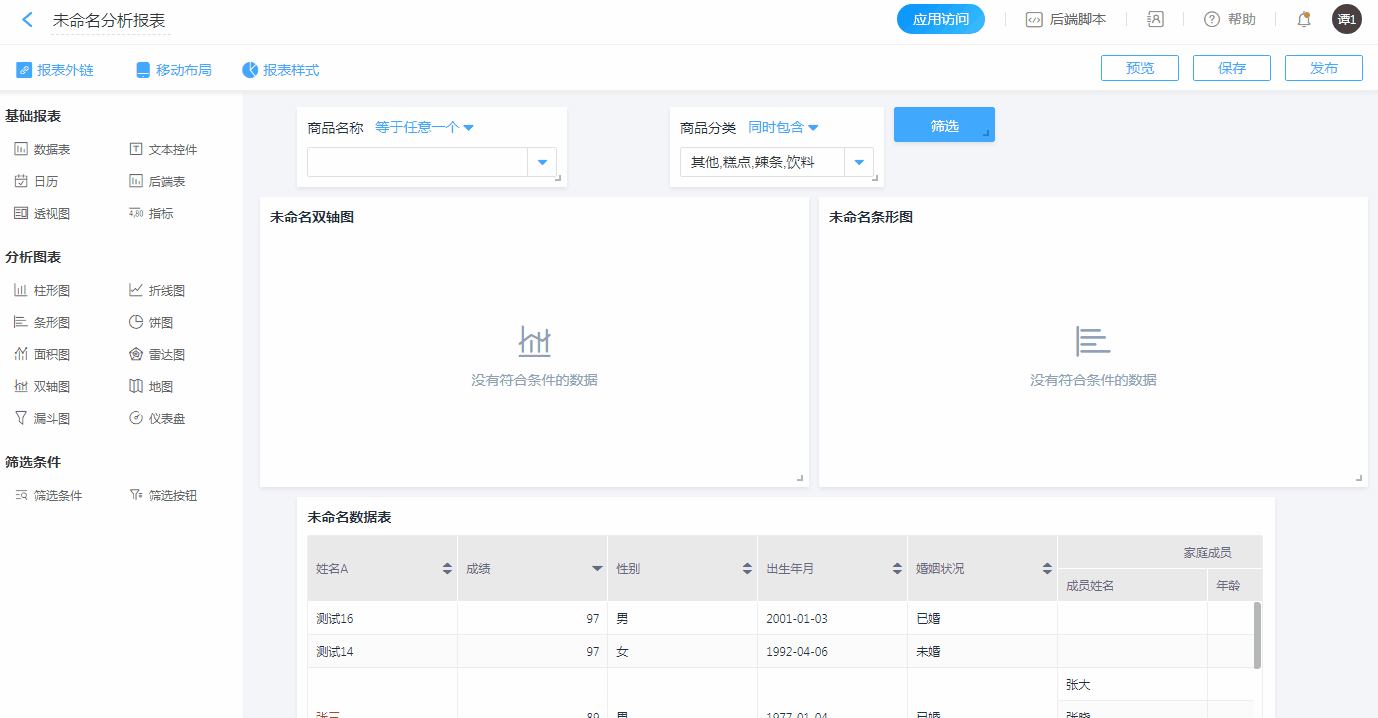 新报表内的报表组件设置好后,可设置筛选条件。