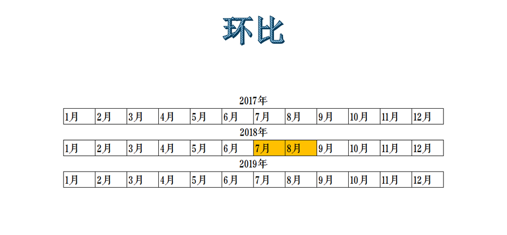 环比是指在某个时间【如:2019年】内部的某个时间区间【如:7月和8月】的对比。