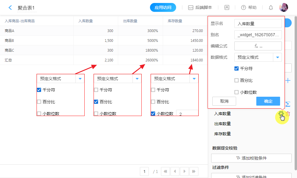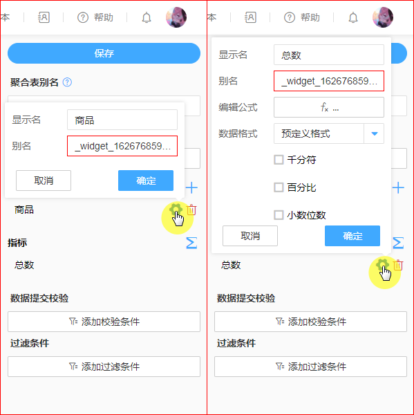 修改聚合表计算公式,生效后按新公式重新计算聚合数据。