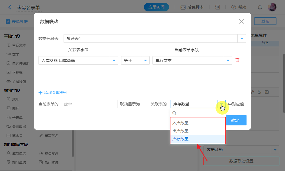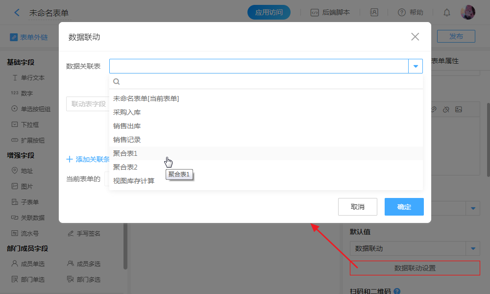 聚合表表单标题:用于数据联动关联表单选取时,方便区分名称。