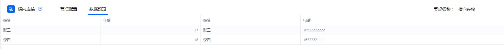 连接两个表单的数据,根据“连接字段”内容相同为条件,把两表的数据进行横向拼接起来。