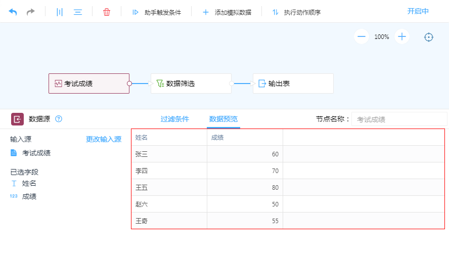 “添加筛选条件”可对数据进行常规的条件判断,筛选出符合条件的数据放行。