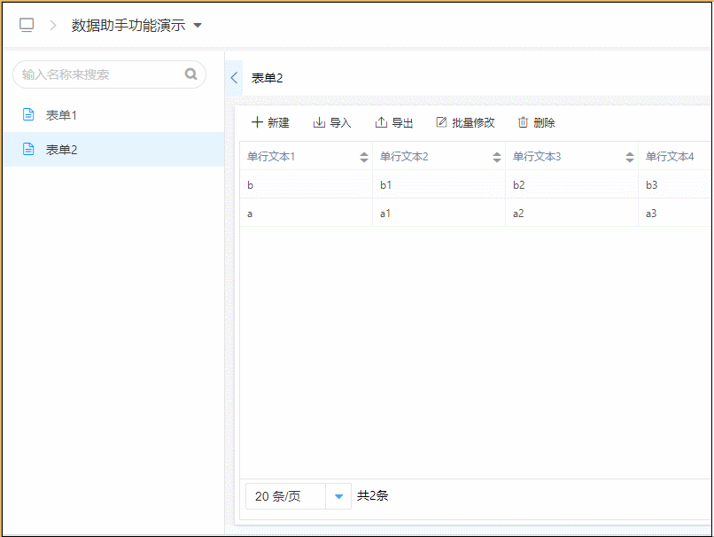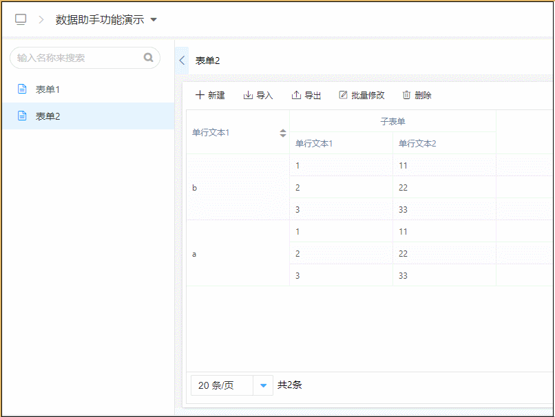 • 数据助手子表单