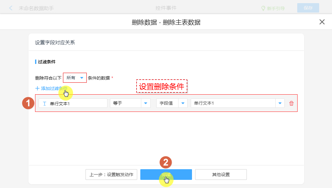 ①、设置删除条件。