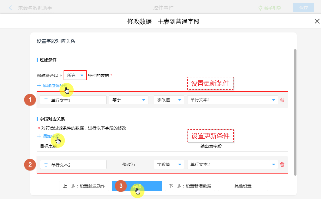 创建“修改数据”动作节点,将“输出表”的数据更新至其他表单。