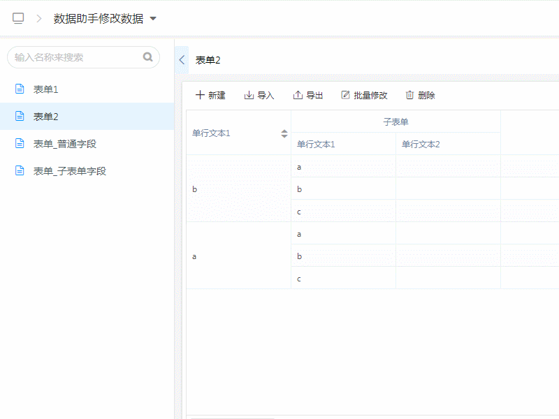 | 主表字段 | 普通字段,非子表单内的字段 |